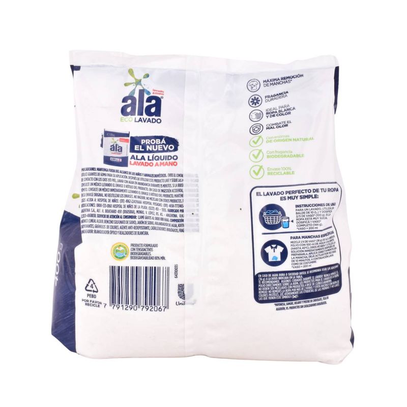 ¡Ropa blanca impecable con facilidad! El jabón en polvo Ala Max Blanco para lavado a mano limpia profundamente tus prendas, manteniendo su blancura y frescura, ideal para cuidar la ropa día a día.