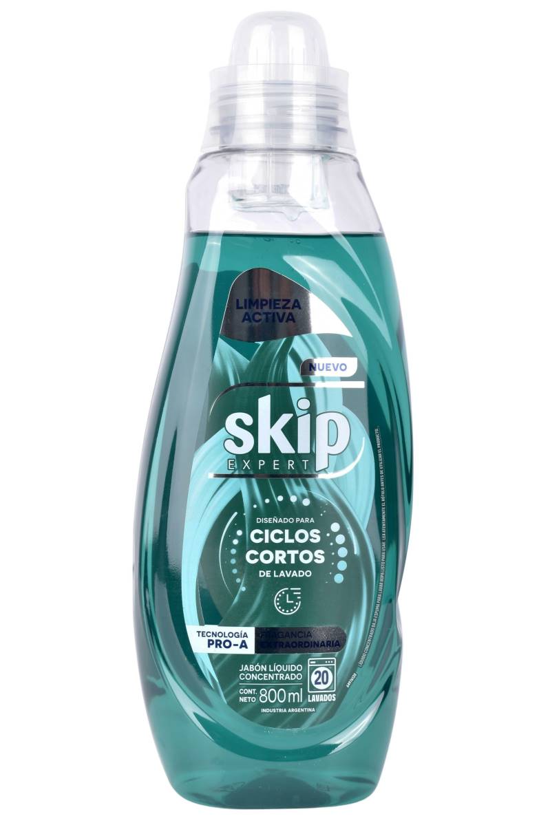 Skip Expert líquido concentrado 800 ml. Limpieza activa, fragancia intensa y óptimo rendimiento en ciclos cortos. Ideal para tu ropa. Cómpralo en Ferniplast.com.