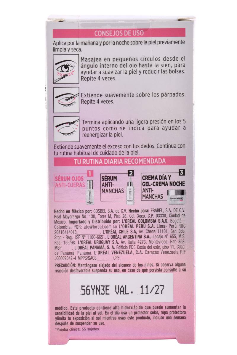 Dale a tu mirada un boost de luminosidad con este sérum de L’Oréal. Su fórmula con ácido glicólico ayuda a reducir ojeras y a devolverle frescura a tu piel, para un look más descansado y radiante.