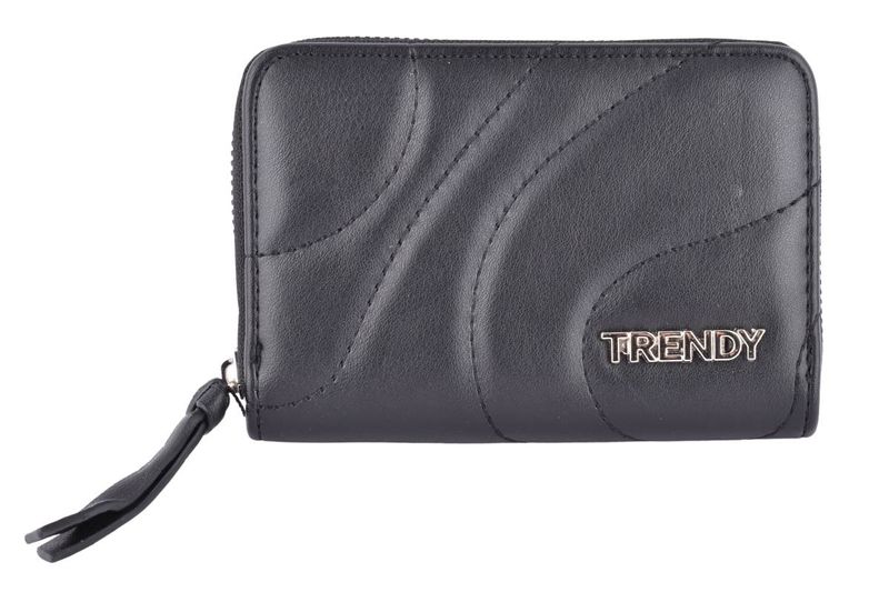 Elegante, compacta y súper funcional. La billetera Trendy con cierre completo es el accesorio ideal para quienes buscan practicidad sin perder estilo. Con un diseño moderno de costuras curvas y logo metálico frontal, esta billetera ofrece el espacio justo para llevar tarjetas, billetes y monedas bien organizados. Su tamaño compacto y el tirador con diseño la hacen perfecta para el uso diario, combinando con cualquier look.