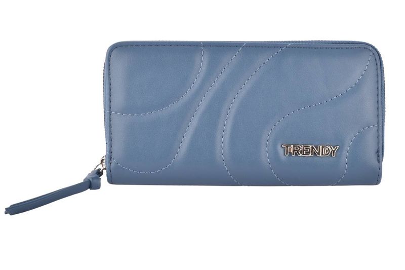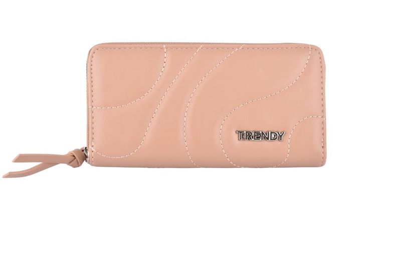 Llevá tu estilo a todas partes con esta billetera Trendy con cierre, diseñada para combinar practicidad y elegancia. Su textura suave con costuras curvas y el logo metálico le dan un toque moderno y sofisticado. Ideal para guardar billetes, tarjetas y monedas con total seguridad.
