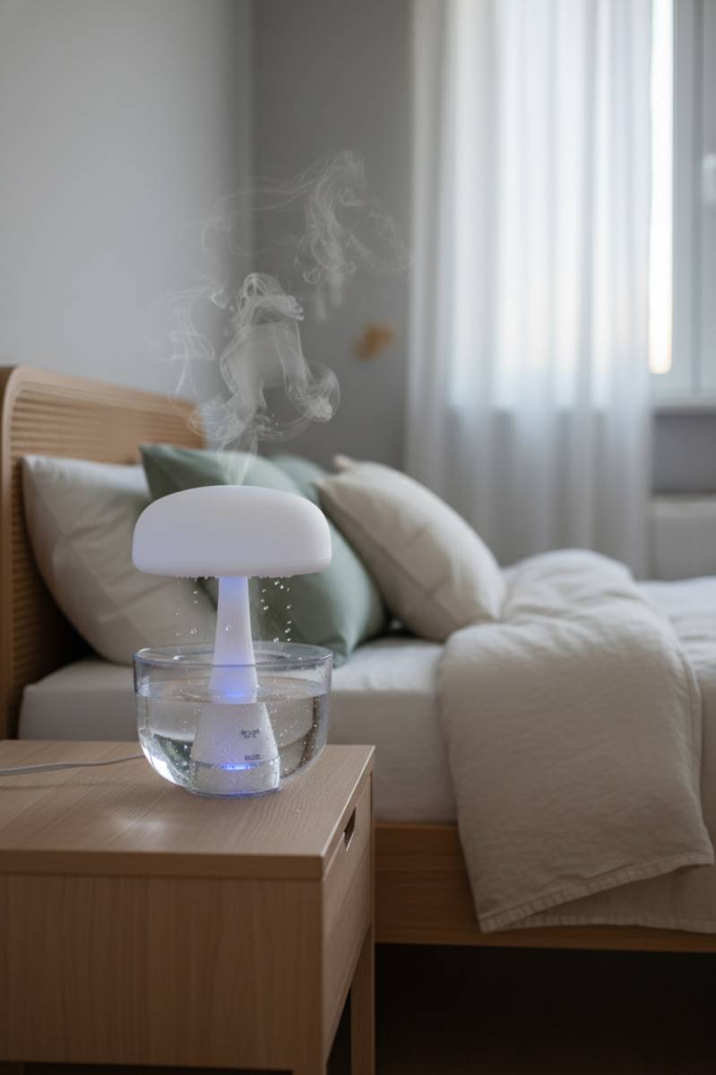 Ideal para crear un santuario de calma en casa, oficina o dormitorio. Utiliza el sonido relajante de la lluvia para ayudar a la meditación y conciliar el sueño, mientras que el vapor frío mejora la humedad ambiental y difunde aceites esenciales.
