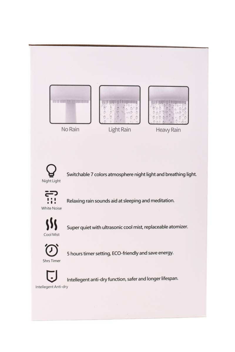 Crea un ambiente relajante y mejora la calidad del aire con este humidificador ultrasónico de diseño único que simula el sonido y la sensación de la lluvia.