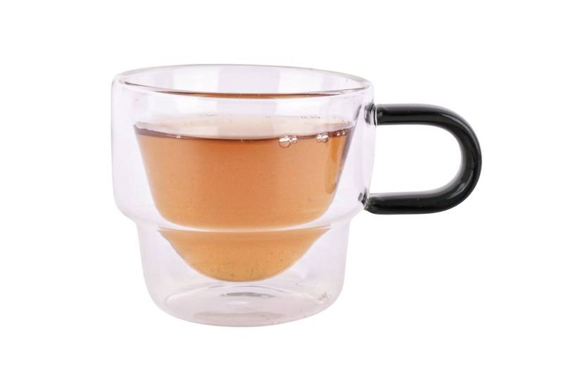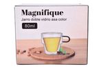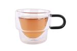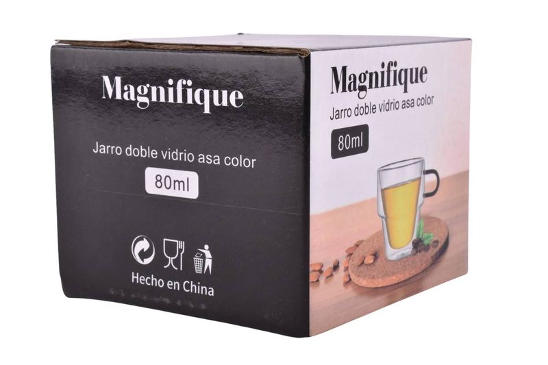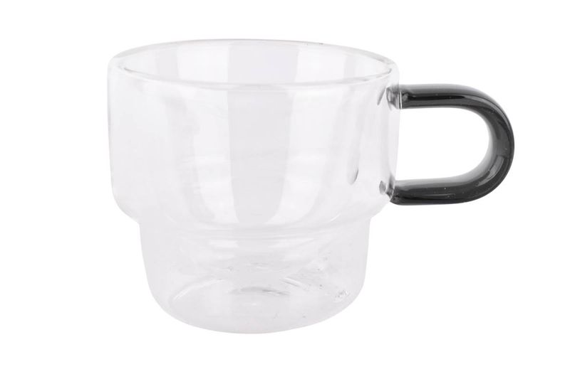 Disfrutá de tus bebidas en un formato práctico y elegante con este jarro de doble vidrio con asa negra. Su capacidad de 80 ml es ideal para espresso, cafés cortos o infusiones, mientras que la doble pared mantiene la temperatura por más tiempo y protege tus manos del calor. Perfecto para uso diario o para recibir invitados.