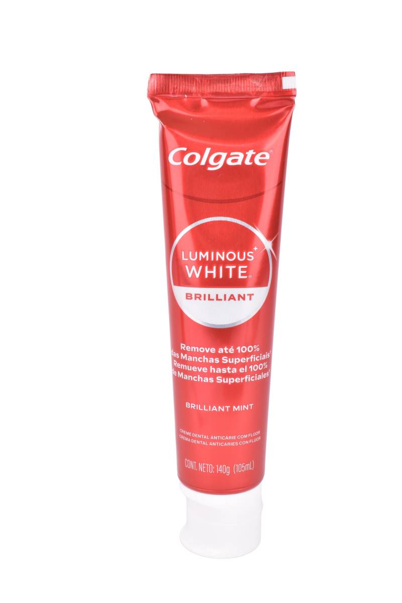 La Crema Dental Colgate Luminous White Brilliant 140g está diseñada para devolver el blanco natural de tu sonrisa en cada cepillado. Su fórmula avanzada con microcristales blanqueadores ayuda a remover manchas superficiales, previene nuevas decoloraciones y brinda una limpieza completa.
