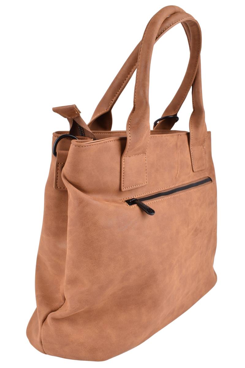 La Cartera Amayra Suela es el bolso de hombro ideal que combina un diseño curvo (hobo) con la practicidad diaria. Su material símil cuero en tono Suela (Caramelo) es un clásico atemporal.