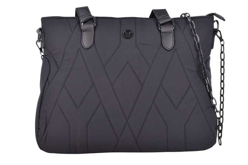 Cartera Amayra Negra acolchada de gran tamaño. Liviana (0.52 kgs), 43 cm ancho. Ideal para trabajo o viaje. Cómprala en Ferniplast.com
