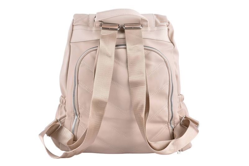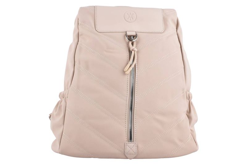 Moderna y funcional, esta mochila Amayra en color Crema (Nude) es el accesorio ideal para quienes buscan comodidad y estilo en un diseño acolchado con costuras en "V".