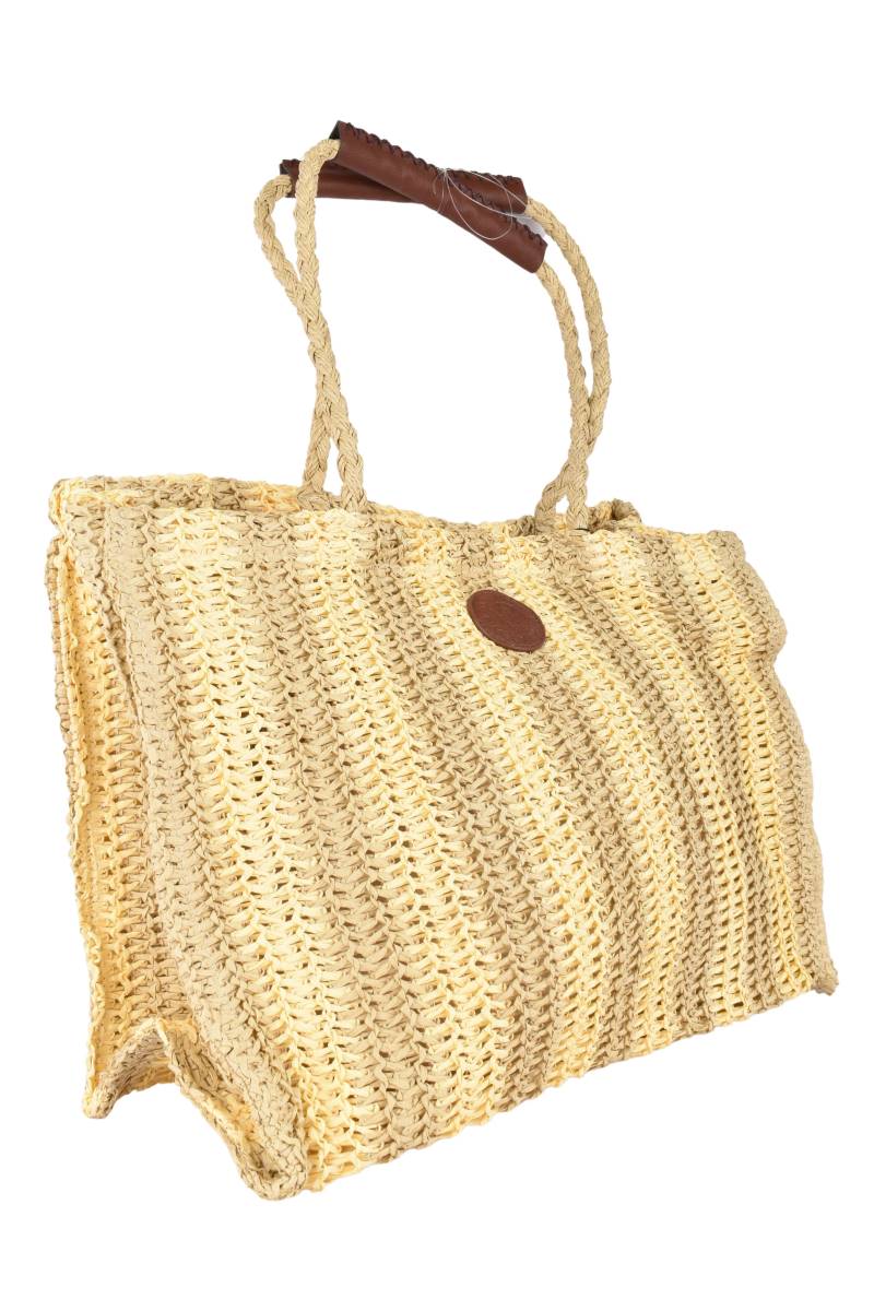 Bolso playero Amayra beige tejido, amplio y liviano. Ideal para playa, pileta y verano con estilo natural. Cómpralo en Ferniplast.com