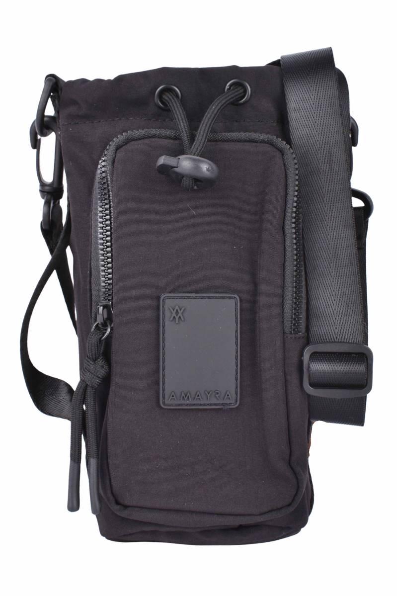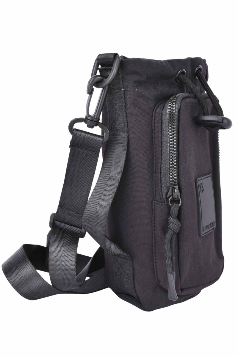 Morral Amayra portabotella negro con correa regulable y bolsillo frontal. Ideal para llevar botellas o termos con comodidad y estilo. Comprá en Ferniplast.com