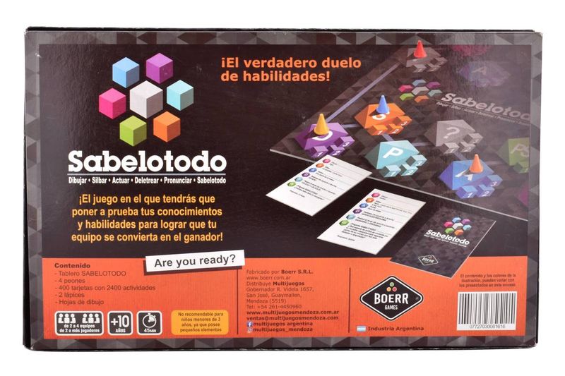 Perfecto para jugar en familia o con amigos y poner a prueba todo lo que sabés… ¡y cómo lo expresás! Dibujar, silbar, actuar, deletrear o pronunciar: cada desafío es distinto, y gana quien logre demostrar que es el verdadero sabelotodo del grupo.