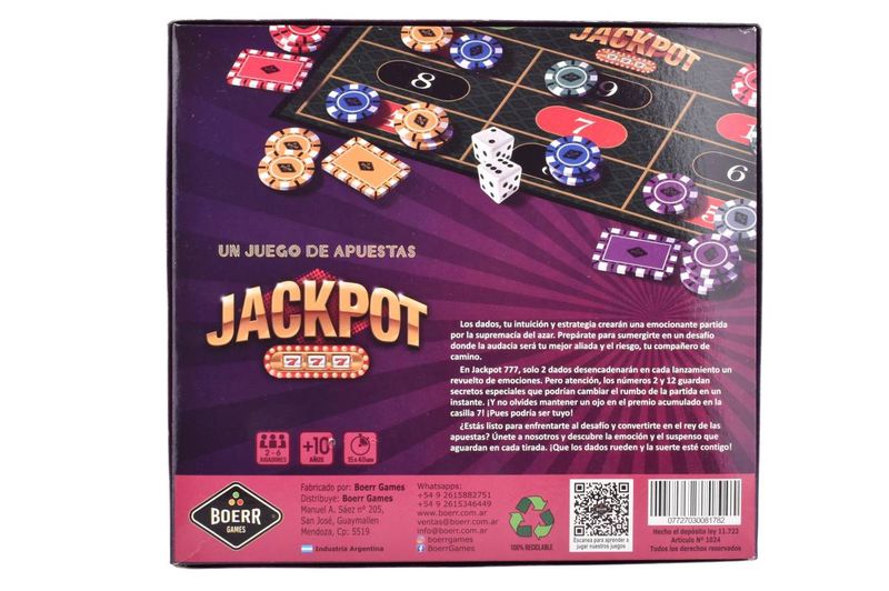 Este juego de mesa Boerr Jackpot 777 convierte tus reuniones en momentos llenos de emoción y diversión. Ideal para jugar en familia o con amigos, desafía tu suerte y estrategia para ganar el gran premio.