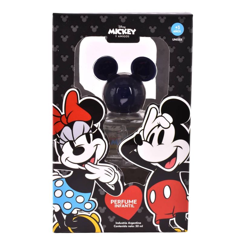 La fragancia de la amistad con el divertido diseño de Mickey y Minnie. Este perfume infantil de 50ml presenta una tapa con las icónicas orejitas, ideal para coleccionar y para el uso diario de niños y niñas.