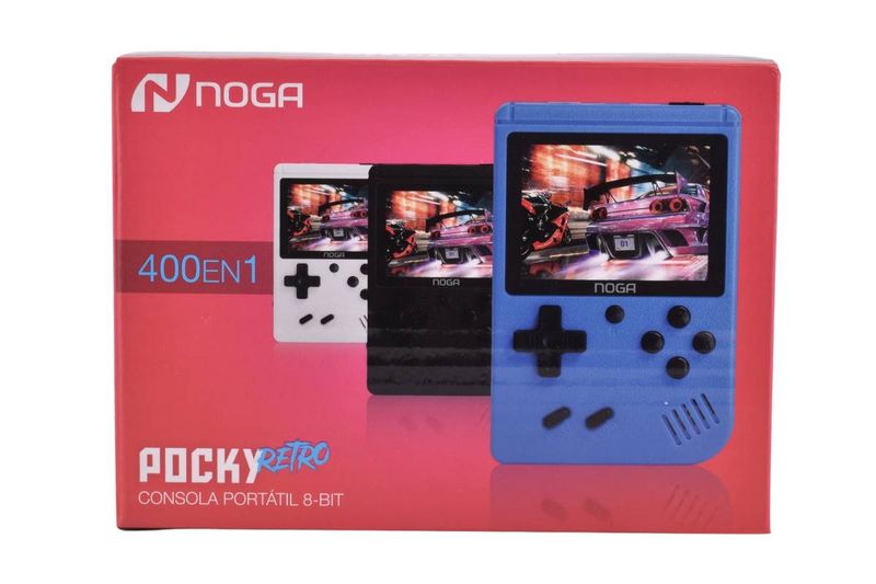 Consola Noga Pocky R8 con 400 juegos 8-bit, pantalla de 3" y batería recargable. Diversión retro portátil. ¡Cómprala en Ferniplast.com!