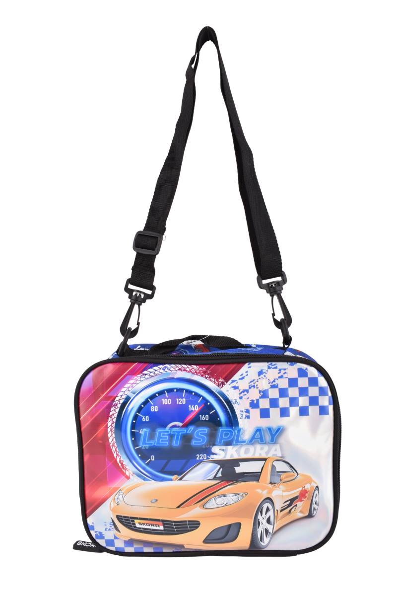 Lunchera infantil con diseño deportivo “Let’s Play Speed”, ideal para llevar viandas al colegio, salidas o actividades diarias. Su formato compacto permite transportar alimentos y bebidas de manera ordenada, manteniéndolos protegidos durante el traslado. Incluye correa regulable para mayor comodidad y un diseño llamativo que acompaña la rutina de los más chicos.