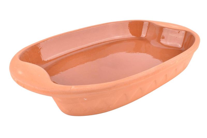 La fuente oval con asa de terracota de 30 x 21 cm es ideal para servir tus platos favoritos con estilo rústico y funcionalidad, perfecta para reuniones y comidas familiares.