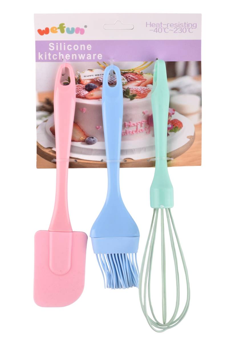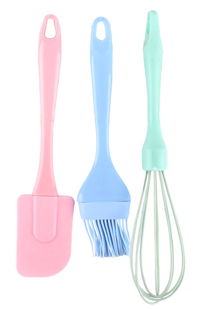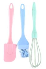 Un kit completo y colorido para tu cocina: batidor, espátula y pincel en tonos pasteles que combinan funcionalidad y estilo en cada preparación.