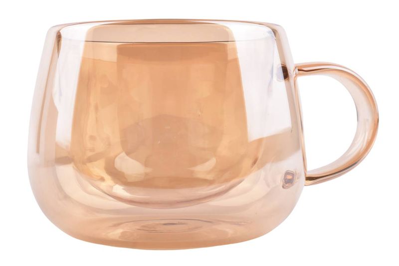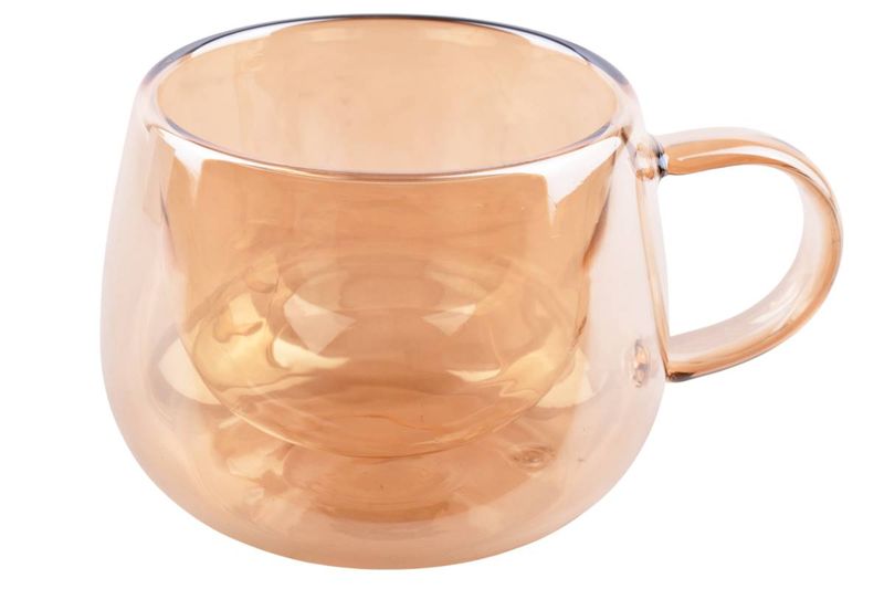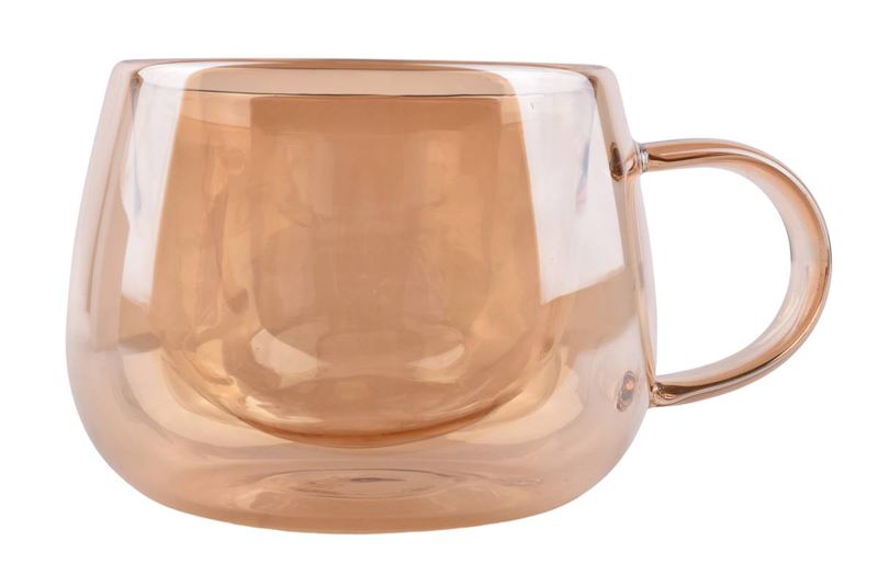 Taza de vidrio doble pared color ámbar 200 ml, ideal para café y té. Diseño moderno y funcional para tu día a día. Cómpralo en Ferniplast.com