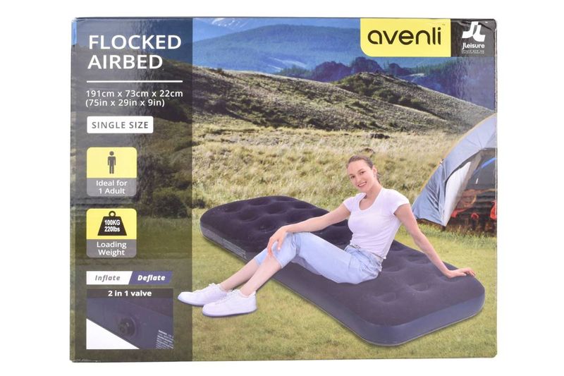 Descanso asegurado en cualquier lugar. Este colchón inflable individual de Avenli es ideal para camping o como cama auxiliar, con una superficie aterciopelada y un gran soporte.