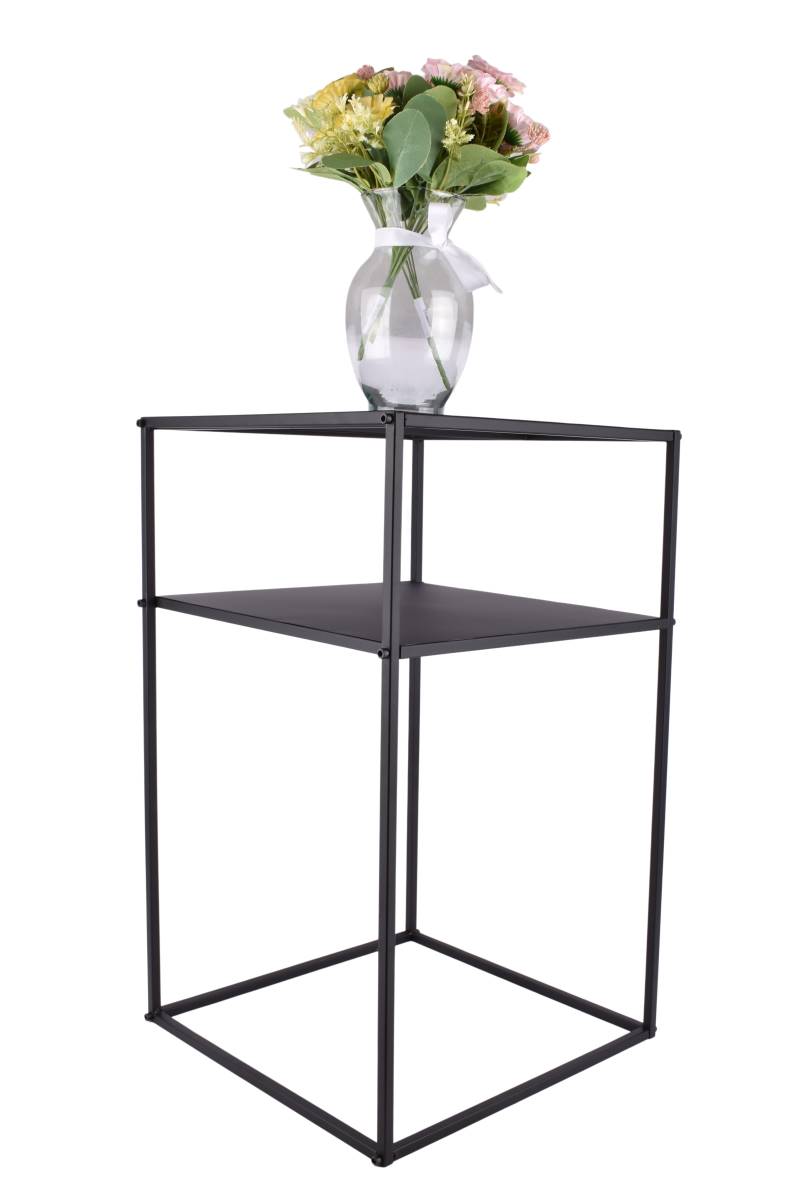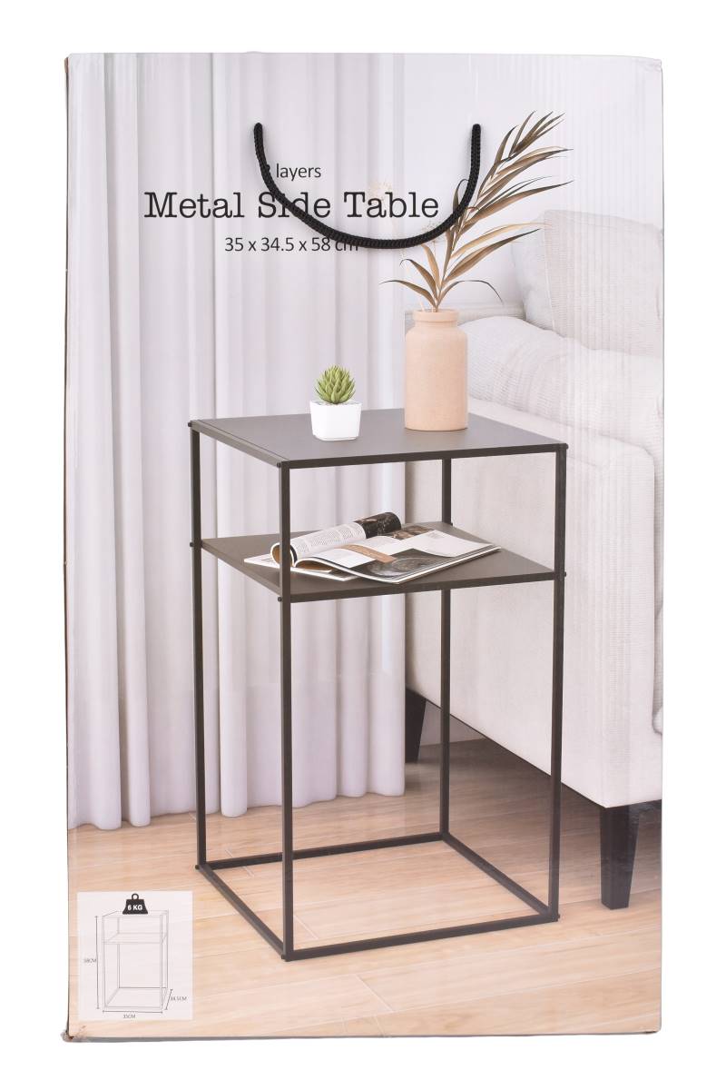 Mesa de luz metálica de 2 niveles en color negro, medidas 35 x 34,5 x 58 cm. Ideal para dormitorio o como mesa auxiliar. Cómprala en Ferniplast.com