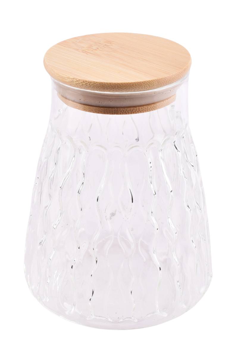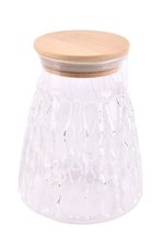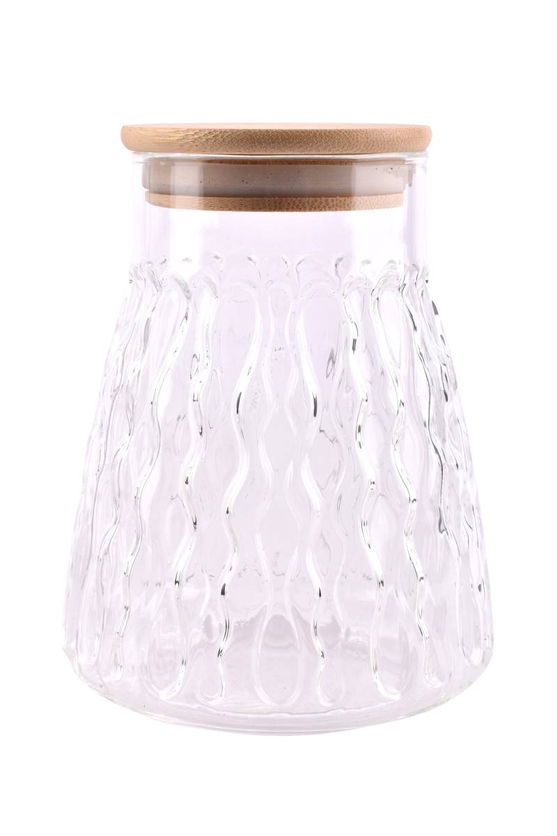 Frasco de vidrio 550 ml con tapa tipo bambú, ideal para almacenar y organizar alimentos secos con estilo. Práctico y decorativo. Cómpralo en Ferniplast.com