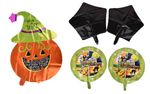 Set de 5 globos metalizados de Halloween: calabaza gigante, estrellas negras y diseños verdes. Crea un ambiente festivo. Cómpralo en Ferniplast.com.