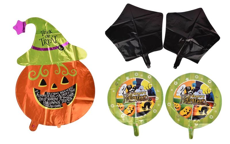 El globo principal con forma de calabaza y sombrero de bruja ofrece un diseño único y un tamaño considerable para maximizar el impacto visual. El material foil permite que los globos se mantengan inflados por un periodo prolongado y cuentan con una válvula de autosellado para facilitar su uso.