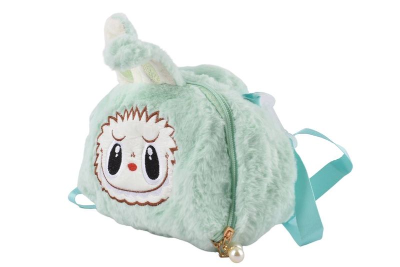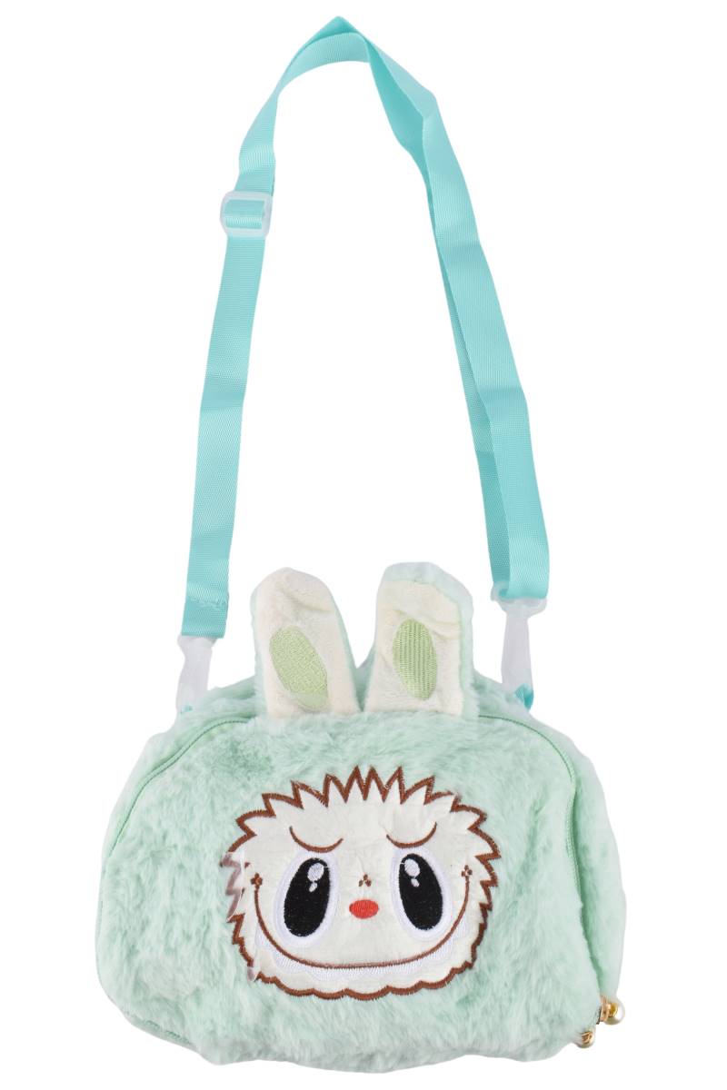 Un bolso de peluche ultra-suave y adorable con el diseño del personaje La Bubu, perfecto para llevar pequeños tesoros. Su color verde menta y las orejas de conejo lo convierten en el accesorio de moda infantil más tierno.