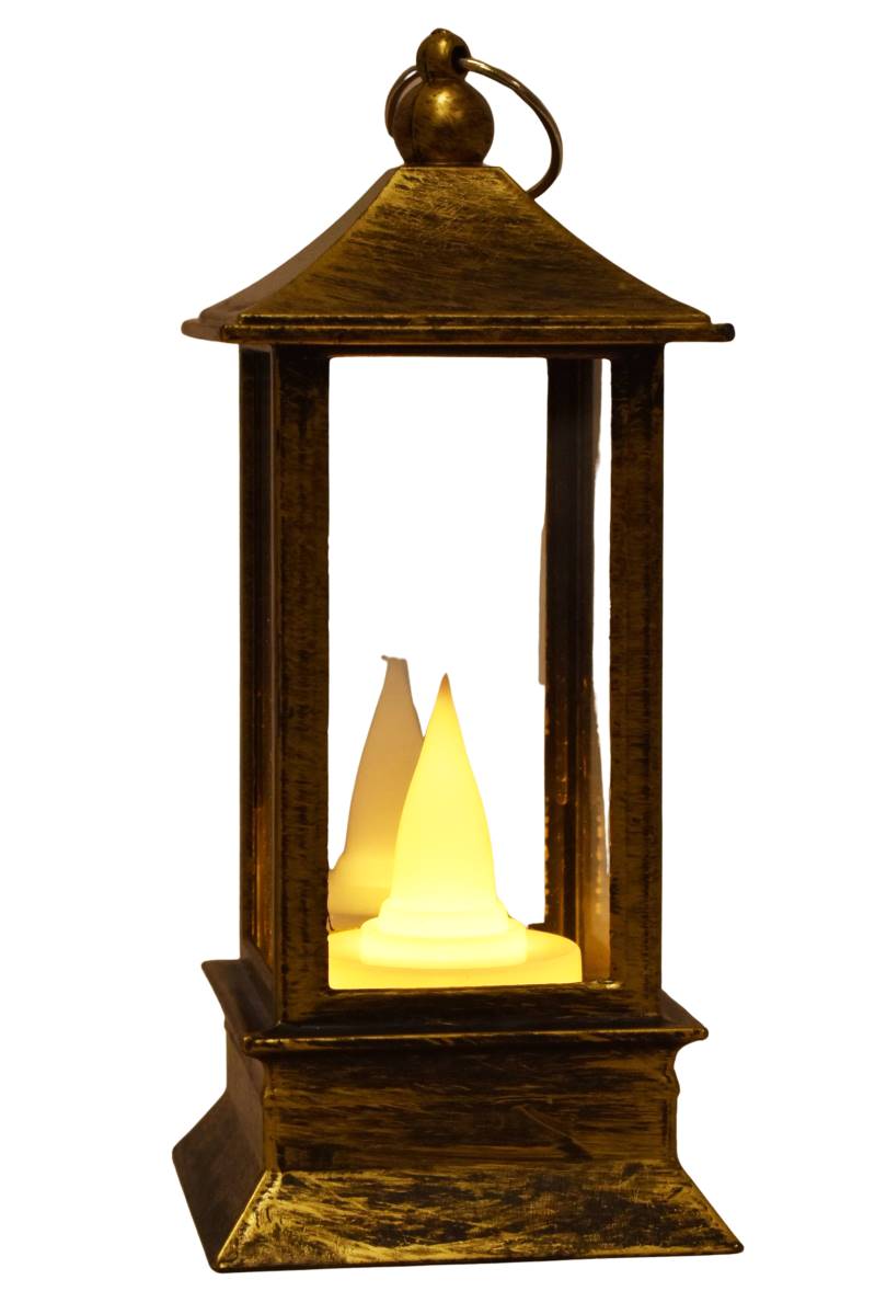 Farol decorativo con luz LED tipo vela a pila, ideal para ambientar espacios con un estilo cálido y seguro. Perfecto para generar iluminación suave en mesas, rincones decorativos, centros de mesa o ambientes temáticos sin riesgos de fuego.