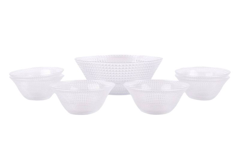Organizá y serví tus alimentos con estilo gracias a este set de compoteras con bols de vidrio labrado. Con 7 piezas, son ideales para presentar postres, frutas, salsas o snacks de manera elegante y práctica.