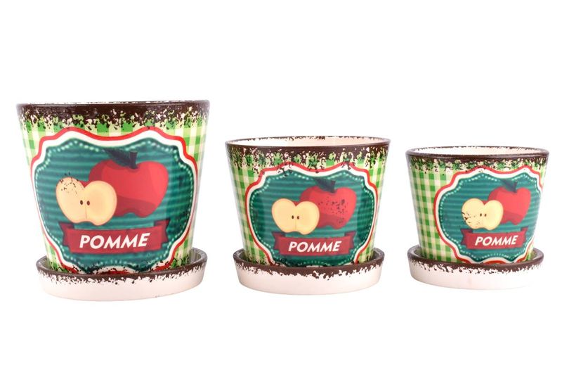 Set de 3 macetas de cerámica "Pomme" diseño manzana, perfectas para suculentas o hierbas. Añade un toque vintage a tu hogar. ¡Cómpralo en Ferniplast.com!