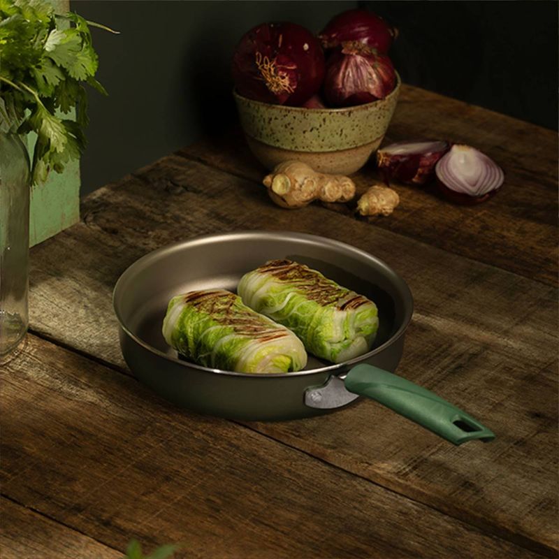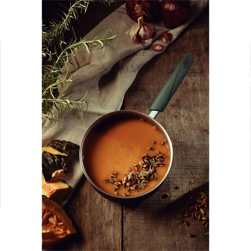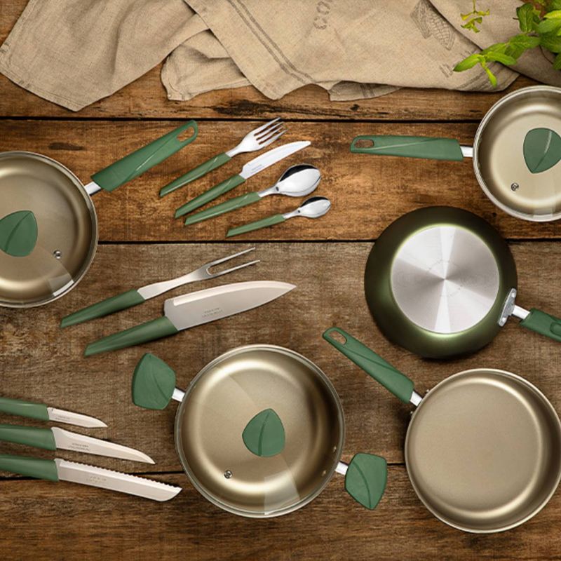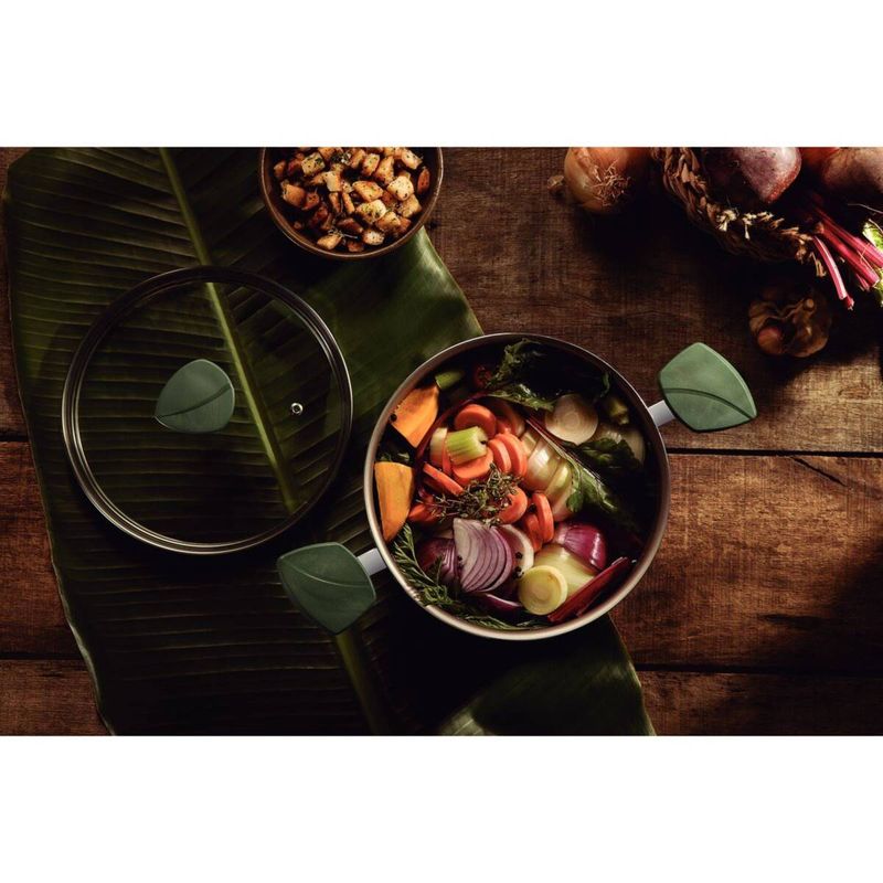 El compromiso con la sustentabilidad comienza desde la producción de la línea, que se realiza con piezas de cocina en cuerpo de aluminio con revestimiento interno y externo de antiadherentes. Los mangos, asas y agarradores son de polímero 100 % reciclable, que respetan un enfoque ecológicamente responsable. Además, toda la línea presenta un diseño moderno y minimalista, inspirado en la propia naturaleza, que ofrece un manejo cómodo y visualmente atractivo.