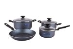 Agregá practicidad y eficiencia a tu cocina con la batería de cocina Tramontina Linz de 7 piezas. Fabricada en aluminio con revestimiento antiadherente Starflon Max, permite una cocción rápida y uniforme, evitando que los alimentos se peguen y facilitando la limpieza. Sus tapas de vidrio templado con bordes de acero inoxidable brindan visibilidad durante la preparación, mientras que los mangos de baquelita y los agarres de nailon aseguran comodidad y seguridad al cocinar. Una batería versátil, resistente y fácil de usar, perfecta para acompañar cada una de tus recetas diarias.