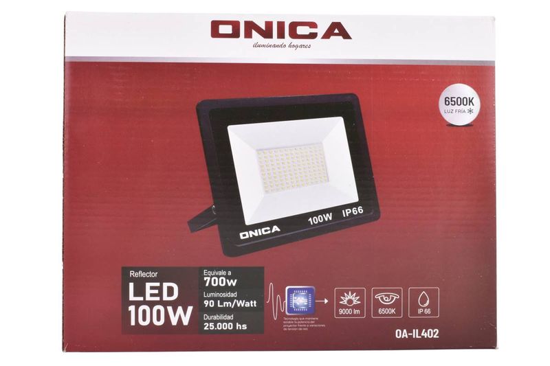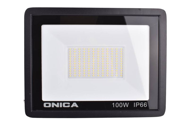 Reflector LED Onica 100W luz fría IP66, potente y de bajo consumo, ideal para exteriores. Iluminá mejor y cómpralo en Ferniplast.com