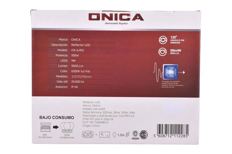 Iluminá grandes espacios con potencia y bajo consumo gracias al reflector LED Onica de 100W, ideal para exteriores y uso continuo.