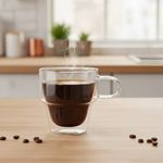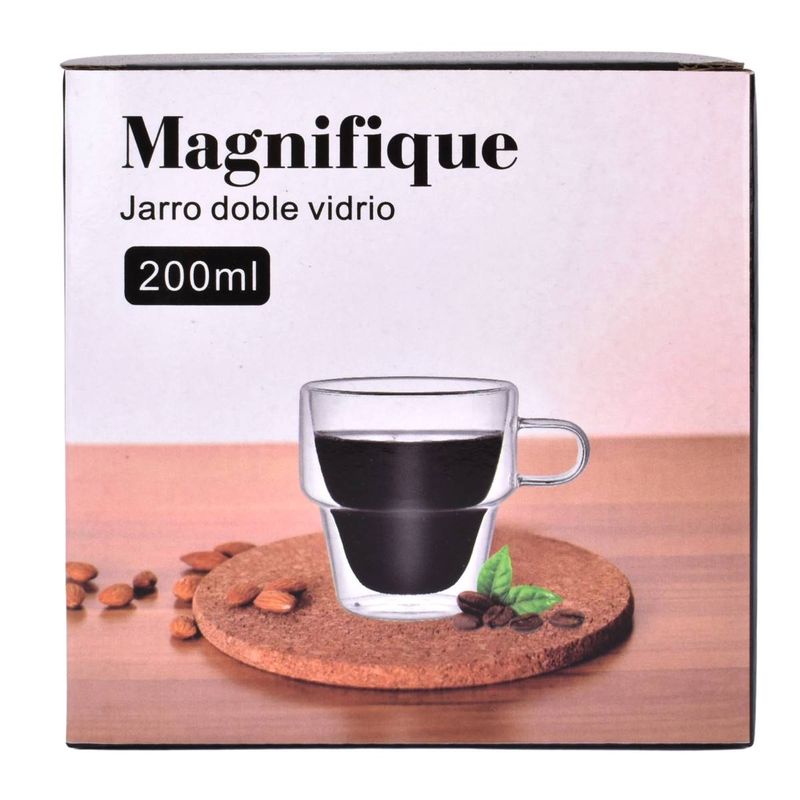 Jarro Doble Magnifique 200 ml con asa, diseño térmico de vidrio doble. Conserva la temperatura y realza tu café. ¡Cómpralo en Ferniplast.com!