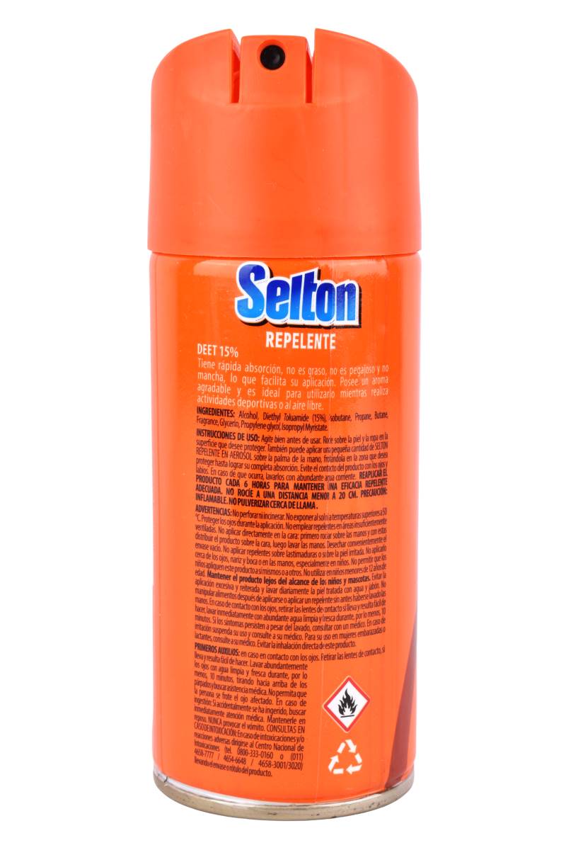 Repelente Selton Uso Cotidiano (15% DEET): 6 horas de protección. Fórmula liviana y no pegajosa en aerosol de 165ml. Ideal para uso diario. Cómpralo en Ferniplast.com.