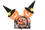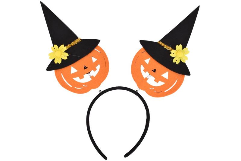 Sumale diversión y un toque festivo a tu look con la vincha de Halloween con calabazas y sombrero. Un accesorio ideal para fiestas, disfraces o eventos temáticos, que combina comodidad y estilo para destacar en la noche más aterradora del año.