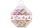 Pack de 100 gomitas finitas en tonos pastel, ideales para todo tipo de peinados. Vienen en una práctica caja acrílica reutilizable. Perfectas para sujetar colitas, trenzas o secciones pequeñas de cabello sin tironear. Ideales para uso diario, escuela, trabajo o actividades deportivas.