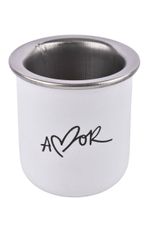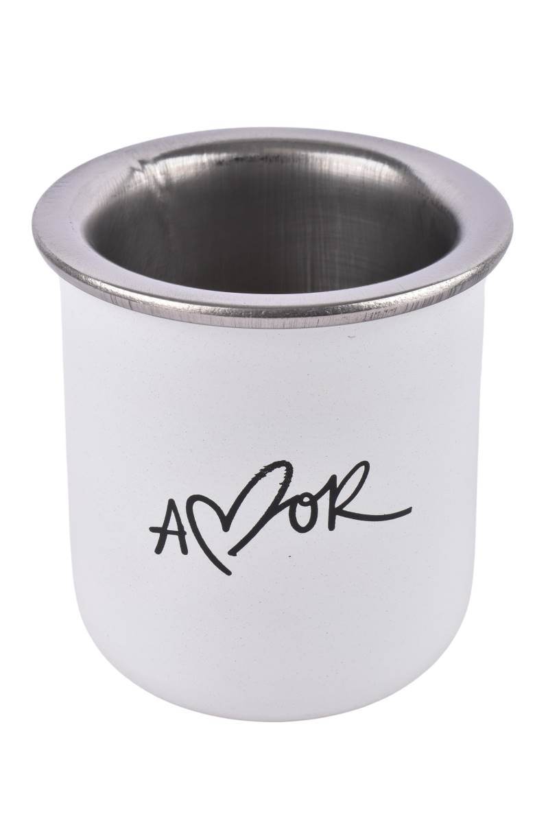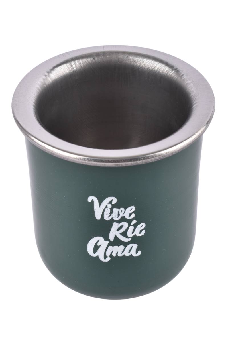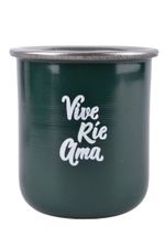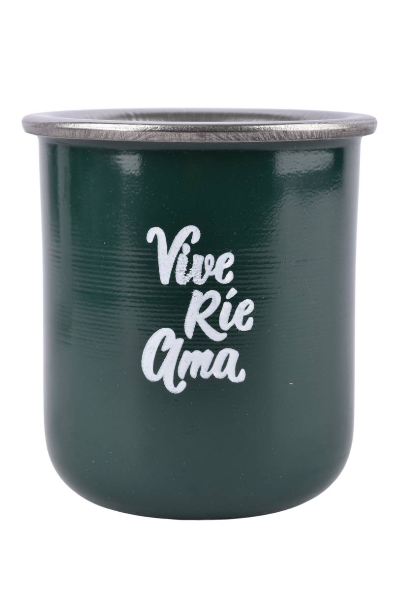 Mate de Acero estilo enlozado con frases "AMOR" o "Vive Ríe Ama". Diseño moderno y borde metálico. ¡Cómpralo aquí en Ferniplst.com!