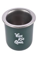 Disfruta de la tradición del mate con un toque moderno y sentimental. Este mate compacto, con estilo de taza enlozada, presenta un cuerpo de color mate (blanco o verde oscuro) y un robusto borde de acero inoxidable. Su diseño incluye frases inspiradoras como "AMOR" o "Vive Ríe Ama", convirtiéndolo en un regalo excelente para el Día de la Madre o cualquier ocasión.