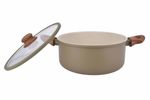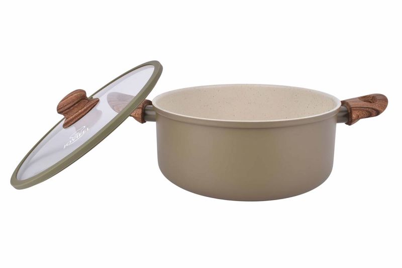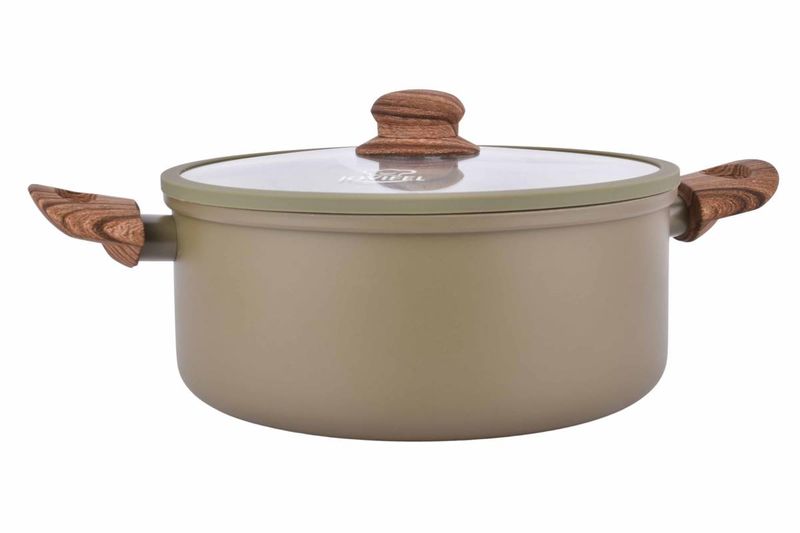 Cacerola de 24 cm con revestimiento antiadherente y tapa de vidrio, ideal para una cocción pareja, práctica y con diseño moderno para el uso diario. Ideal para preparar guisos, pastas, arroces, sopas y comidas familiares, permitiendo cocinar de forma eficiente y controlar la cocción sin destapar.