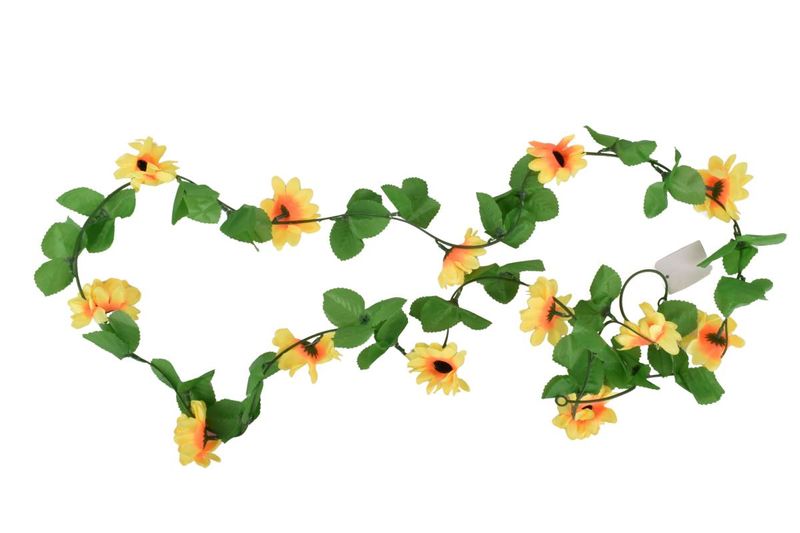 Guirnalda de girasoles artificiales de 2 metros. Ideal para decorar eventos y el hogar con un toque natural y colorido. En Ferniplast.com