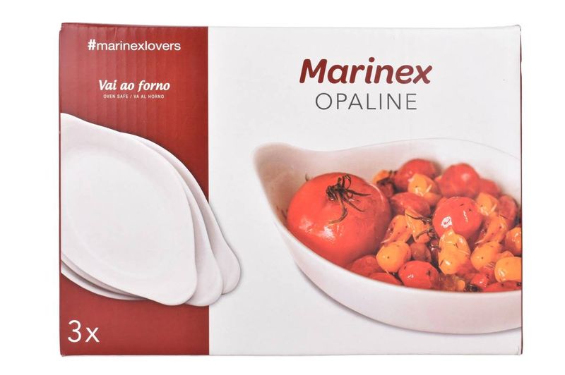Set de 3 fuentes Marinex de opalina aptas para horno. Resistentes, elegantes y prácticas para cocinar y servir. Ideal para tu cocina diaria.