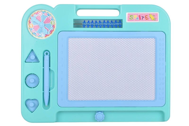 Pizarra mágica infantil para dibujar y borrar fácilmente, con sellos integrados, contador deslizante y lápiz incluido.