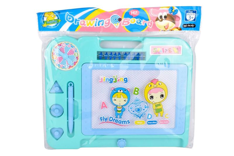 Pizarra mágica infantil con sellos y contador, ideal para dibujar y borrar fácilmente. Juguete portátil recomendado desde 3 años. Cómprala en Ferniplast.com
