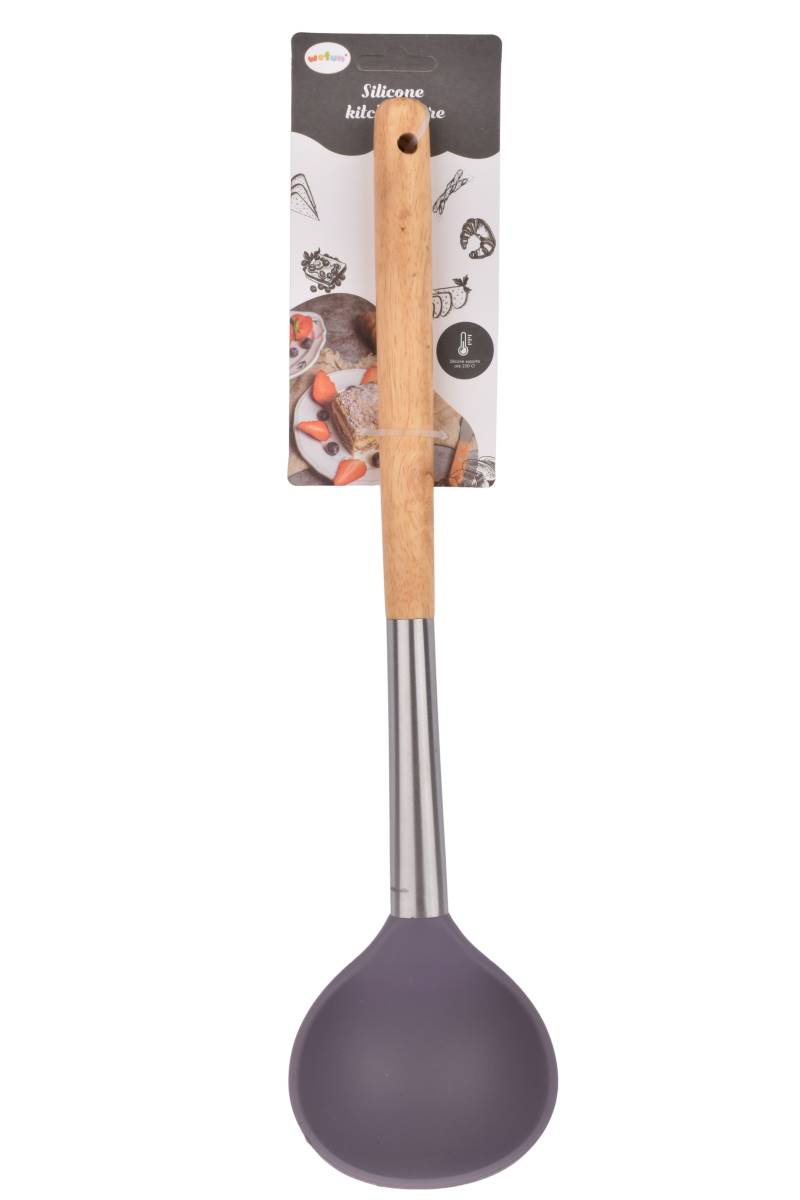 Cucharón de cocina de silicona con mango de madera de 38 cm. Ideal para servir sin rayar ollas. Cómpralo en Ferniplast.com