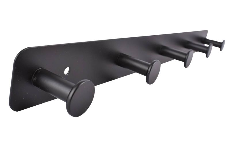 Perchero para puerta o pared negro de 42 cm con 4 ganchos, ideal para organizar abrigos y bolsos. Cómpralo en Ferniplast.com