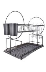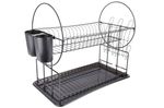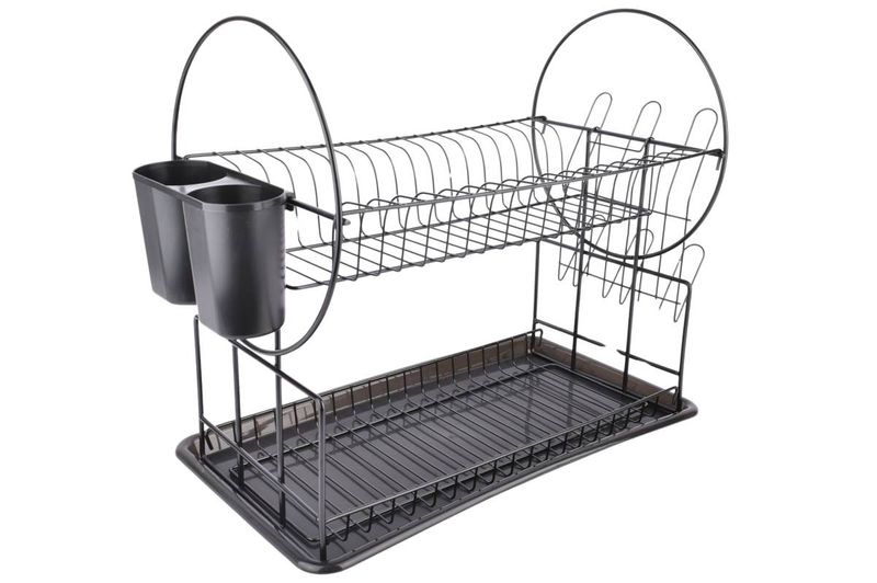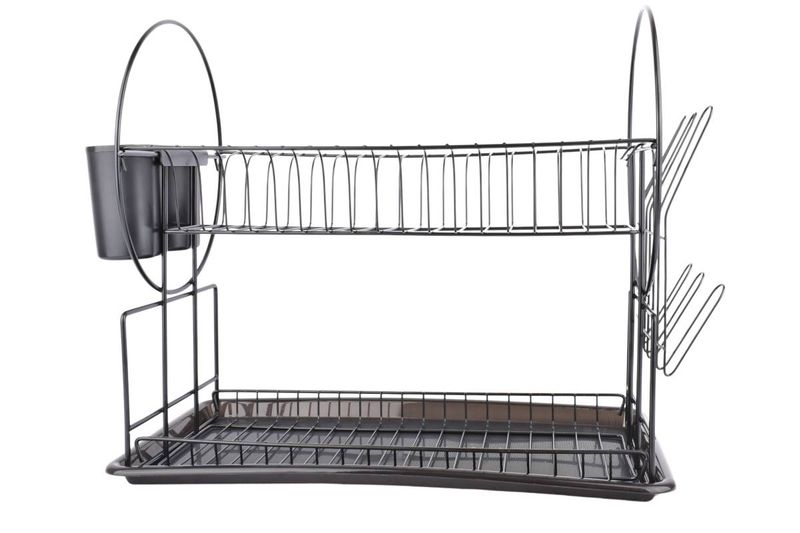 Secaplatos de dos niveles que optimiza el espacio en la cocina, ideal para organizar platos, vasos y cubiertos mientras se secan. Permite secar y organizar la vajilla de uso diario sobre la mesada, manteniendo el orden y evitando acumulación de agua.