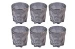 Set de 6 vasos de vidrio con textura y tono gris translúcido, ideales para uso diario y para presentar bebidas con un estilo moderno. Indicados para servir agua, jugos, gaseosas, tragos y bebidas frías o a temperatura ambiente, tanto en comidas diarias como en reuniones.